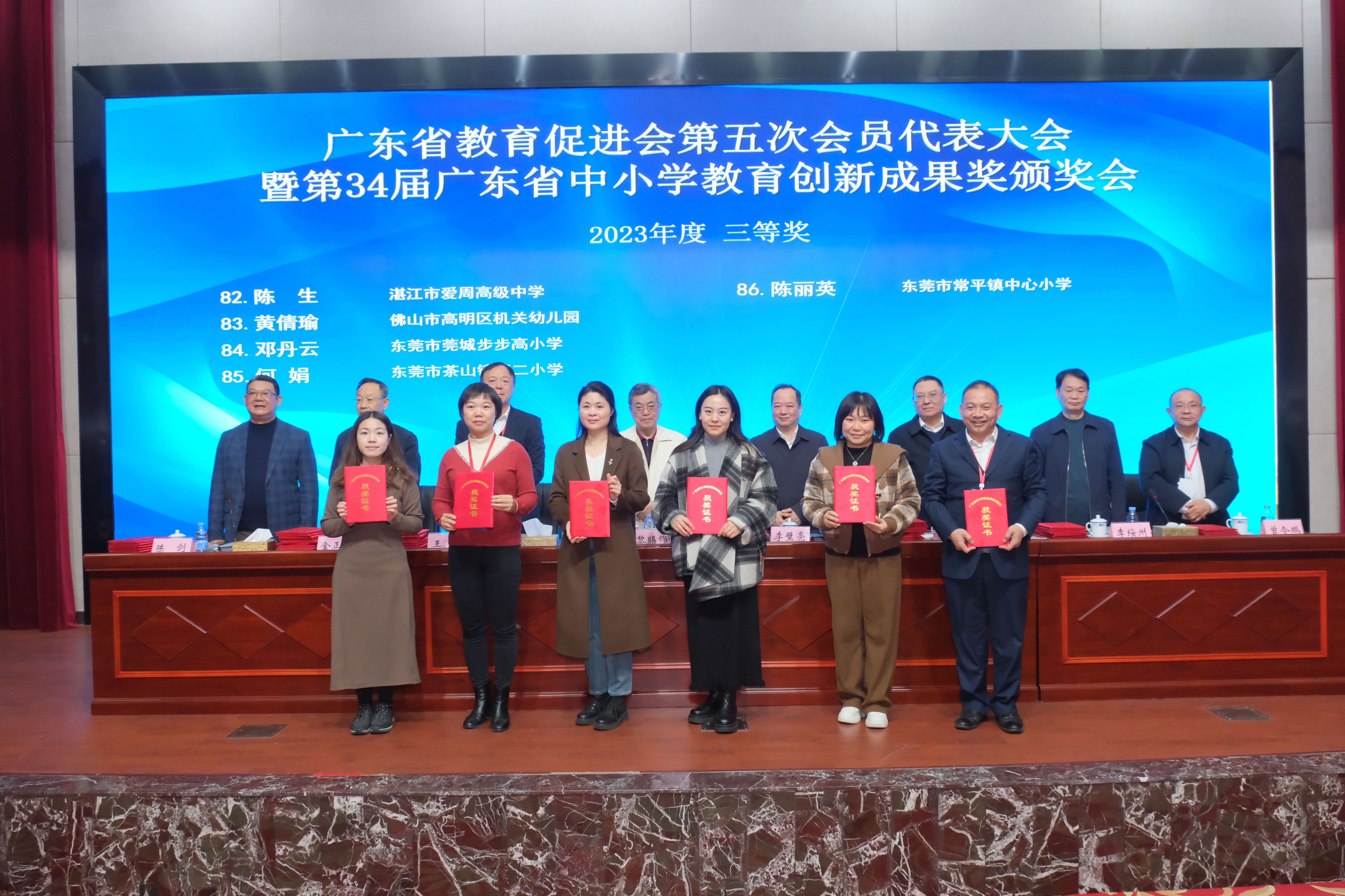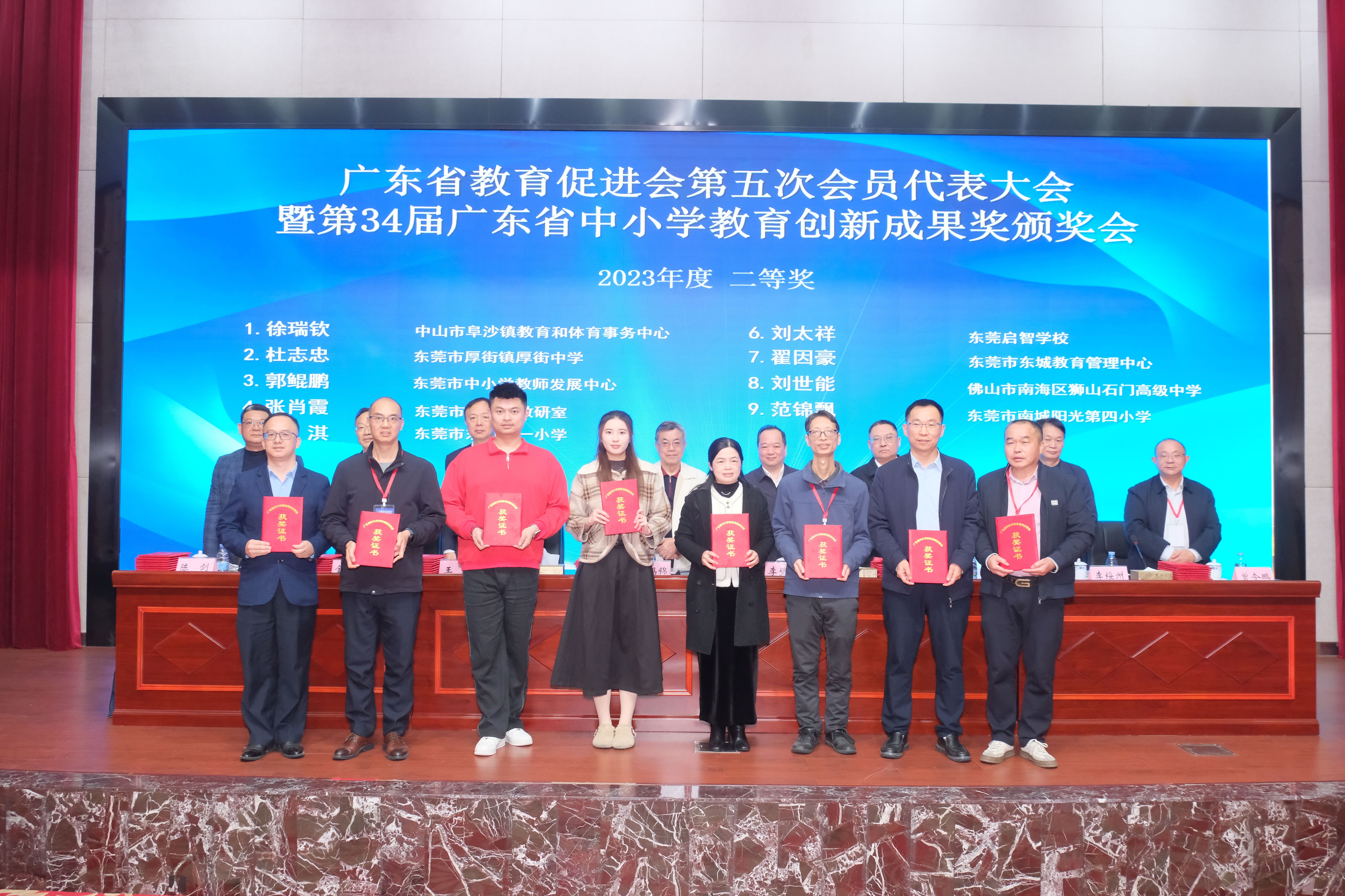 大会结束后,第34届广东省中小学教育创新成果奖颁奖会拉开序幕。颁奖会由华南师范大学增城学校副校长何菊华主持。2023年度广东省中小学教育创新成果奖共吸引了全省各地983项创新成果项目申报,最终评出250项获奖项目,其中一等奖13项、二等奖37项、三等奖200项,东莞、中山、茂名市教育局教研室联络员和肇庆市端州区教师发展中心联络员被评为优秀联络员。