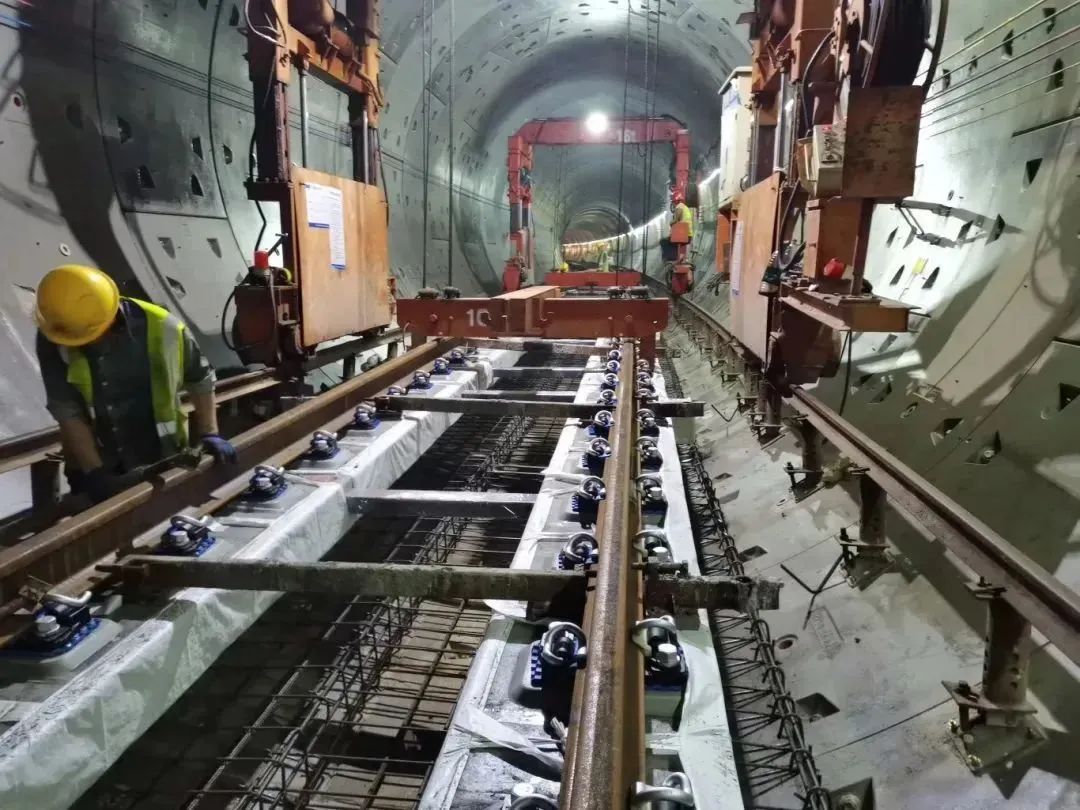 十三号线二期全线轨行区全长约87公里,共包含5种道床类型,施工面临着道床类型转换频繁、施工难度大、组织协调工作复杂等诸多挑战。截至目前,正线轨道施工累计完成73%。